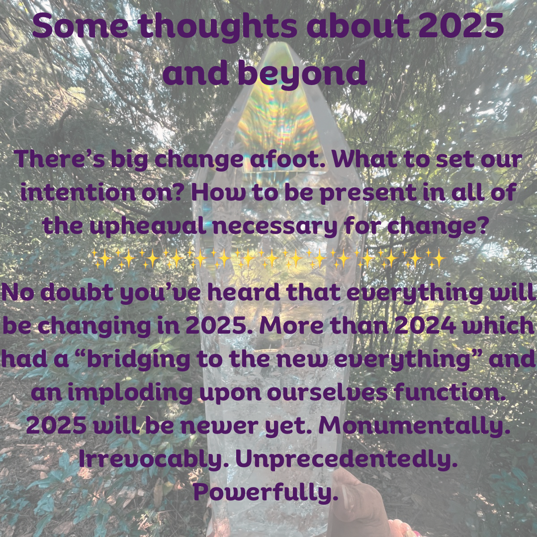 Hi how are you doing? How did 2024 go for you? It was a bridge year, palpably so. We can all feel that "big new and different" is on the horizon but what is that really? Is it a new dimension? A new power structure? An evisceration of structures? A return to something that feels old or a bold step into innovation bigger than history has ever shown?